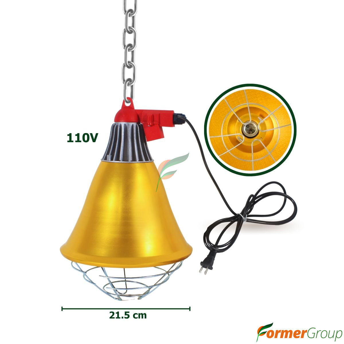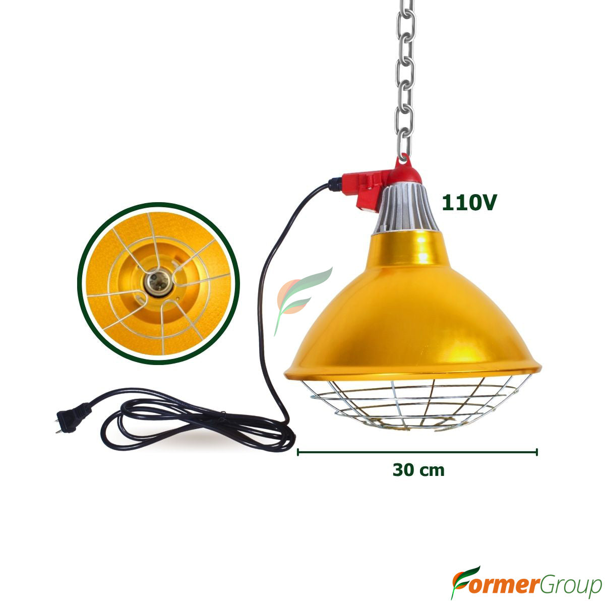 - Incorpora una cadena de suspensión ajustable, que permite colgar la campana a distintas alturas para regular la intensidad del calor de manera práctica y precisa. Esta versatilidad la hace ideal no solo para parideras, sino también para zonas de transición como los precebos.